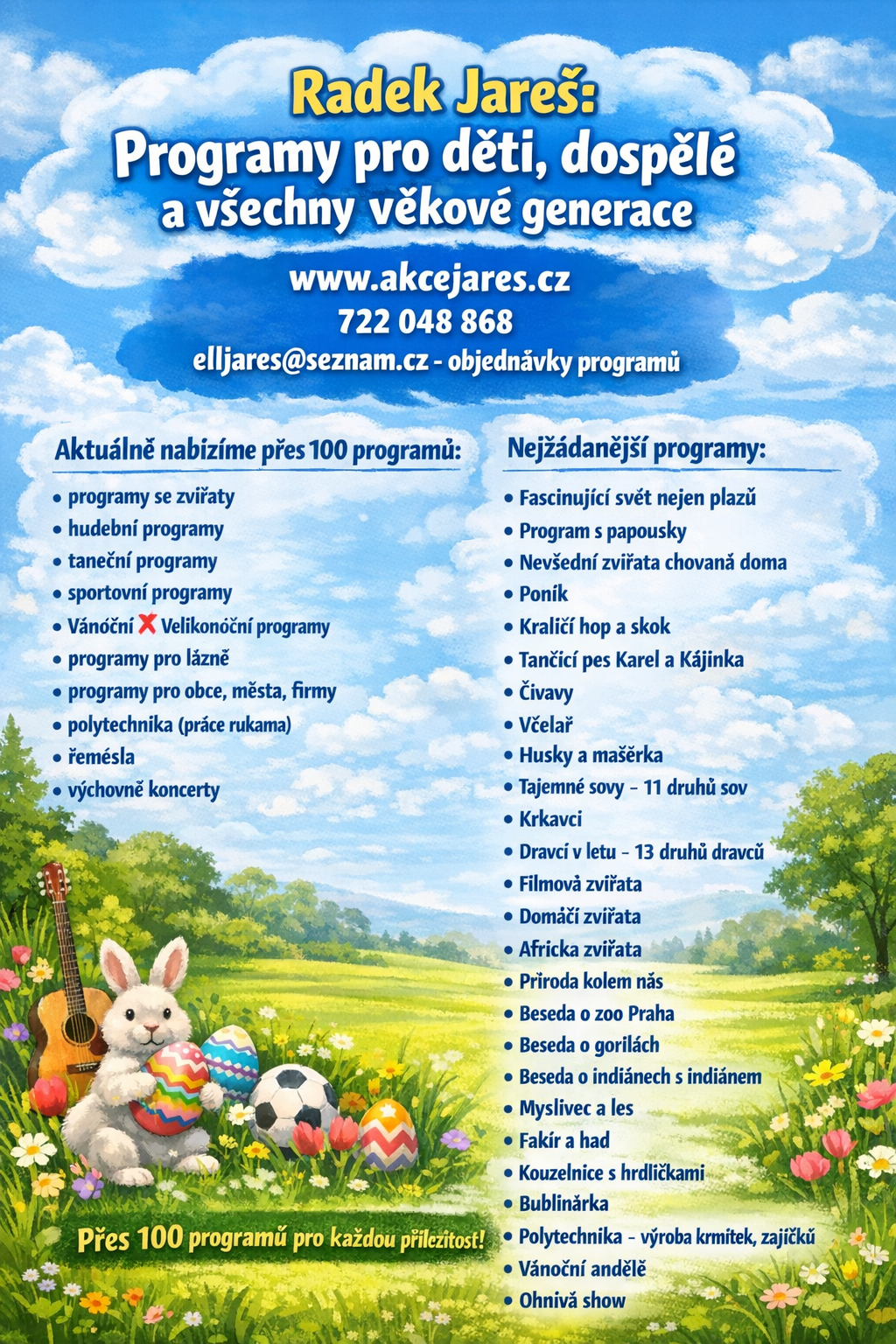 Nabízíme taneční, hudební, sportovní a vánoční/velikonoční programy, které jsou přizpůsobeny vašim potřebám a přání.