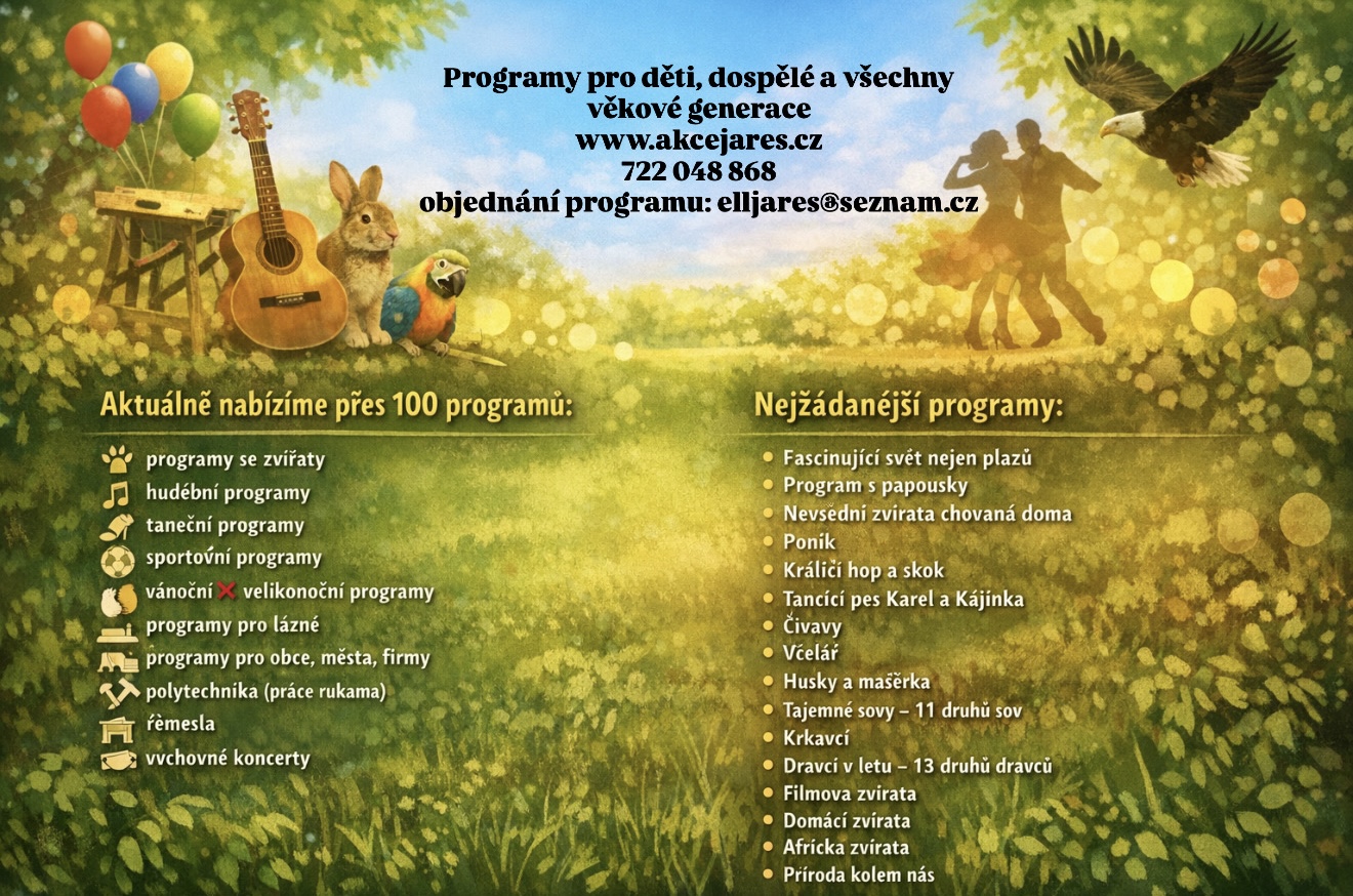 Pořádáme pestré kulturní programy pro školy, školky, seniory i širokou veřejnost. Naše taneční, hudební, sportovní i sezónní (vánoční a velikonoční) programy přinášejí dětem i dospělým radost, nové zážitky a spoustu úsměvů.